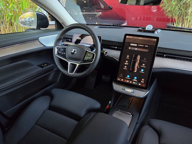 Duurzaam en dynamisch, de Volvo ES90 verenigt deze twee uitersten in zich. Dit is een auto uit, er staat 3500 kilometer op de teller. Geruisloos genieten tegen lage kosten? Dan is deze elektromotor iets voor u! De krachtige motor geeft deze Volvo uitstekende prestaties. Met het comfort van het verwarmbare stuurwiel, de voorstoelen inclusief massagefunctie en de achterbankverwarming benadrukt deze auto zijn positie als een ware verwenauto. De bagageruimte is toegankelijk via een comfortverhogende elektrische achterklep. Het glazen panoramadak geeft ook doordeweeks een vakantiegevoel. Wat een licht en zicht! Vergeet halogeen; deze koplampen gebruiken de allernieuwste matrix LED-technologie met maximale lichtopbrengst zonder de tegenligger te hinderen. Bij de uitrusting van deze Volvo horen onder meer 22 inch lichtmetalen velgen, adaptief dempingsysteem, extra getint glas, in delen neerklapbare achterbank, LED-achterlichten en verwarmde ruitensproeiers. Met het digitale dashboard in deze auto kunt u de interface van uw cockpit personaliseren. Het inventieve 360 graden camerasysteem op deze auto heeft de functie om u assistentie te bieden in nauwe ruimtes en straten, waar het achteruit rijden vaak een uitdaging is. Adaptive cruise control is veilig en comfortabel. De snelheidsregelaar houdt automatisch afstand tot het voertuig dat voor u rijdt. Bedient u de auto liever met uw stem? Dan is het goed om te weten dat spraakbediening aanwezig is. Deze Volvo ES90 is 'connected'. Belangrijke functies worden permanent gemeten en zijn uit te lezen via een speciale app, ook op afstand. Ook is de Volvo uitgerust met: high performance audiosysteem, navigatiesysteem, achteropkomend verkeer waarschuwing, kruisend verkeer detectie, automatische airconditioning en draadloos opladen. Geavanceerde veiligheidssystemen kijken tijdens elke rit met u mee en schatten continu de risico's in. De head-up display is een geweldige extra: ogen op de weg en toch alle belangrijke functies in beeld! Verkeersborddetectie herkent tijdelijke en permanente verkeersborden langs en boven de weg. Het Lane-keeping systeem zorgt dat u mooi binnen de lijntjes blijft. Ongemerkt buiten de rijstrook komen is er niet meer bij. Met voorzieningen als dodehoekdetector detectiesysteem, hill hold functie, brake assist, vermoeidheidsherkenning en bandenspanningcontrolesysteem, bent u altijd veilig onderweg. U bent geïnteresseerd om elektrisch te rijden? Neem dan nu contact met ons op.
