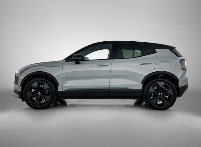 Maak kennis met de Volvo EX30 Cross Country Twin Motor Performance Ultra, een indrukwekkende SUV die elektrisch wordt aangedreven. Met zijn elegante grijze exterieur straalt deze auto klasse uit vanuit elke hoek.