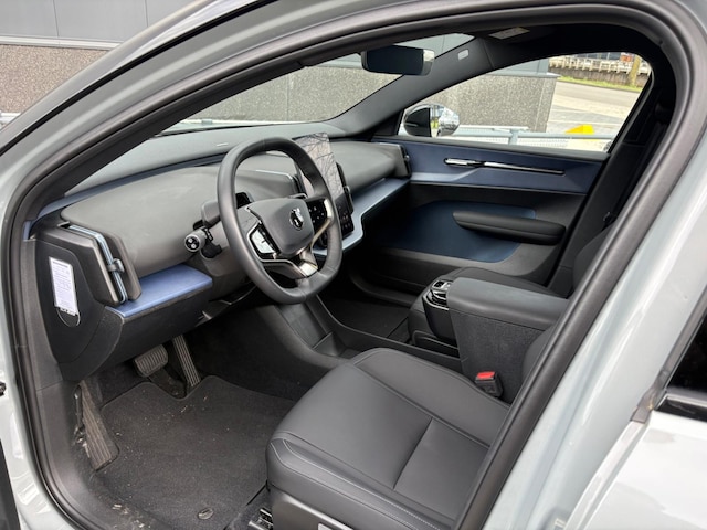 Het rijden met deze Volvo wordt nog meer ontspannen dankzij de innovatieve technieken die onderweg over uw veiligheid waken. Verkeersbord-detectie herkent verkeersborden en toont deze op het instrumentarium van de auto. Deze Volvo EX30 is ook behulpzaam als het gaat om een rechte koers. Het Lane-keeping systeem signaleert en corrigeert als u onbedoeld de rijstrooklijnen dreigt te overschrijden. Voertuigen of personen buiten uw zicht kunnen gevaar opleveren. De actieve dodehoekdetectie waarschuwt direct. U bent mede dankzij forward collision warning system, hill hold functie, brake assist, vermoeidheidsherkenning en bandenspanningcontrolesysteem steeds veilig onderweg.