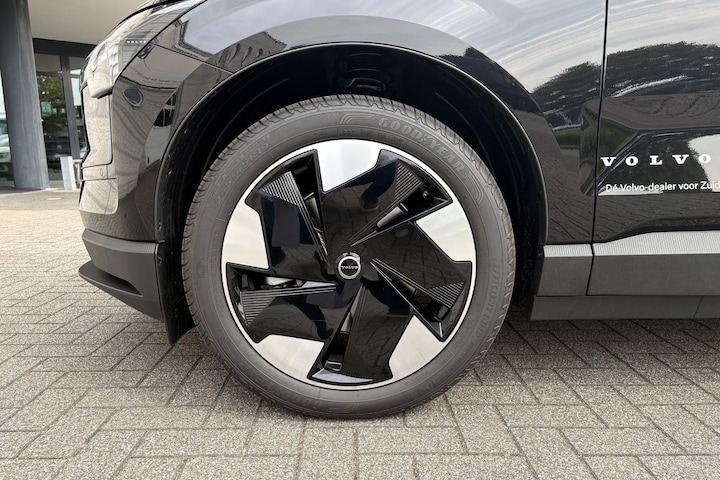 Hij biedt volop ruimte, deze Volvo EX30, en dankzij zijn elektrische aandrijving is er ook meer dan genoeg vermogen voor een dynamische rijstijl. Nooit meer naar de pomp! De elektromotor opladen en rijden maar! De elektrisch bedienbare achterklep opent met een druk op de knop. Tot de uitrusting van deze Volvo behoren ook 19 inch lichtmetalen velgen, LED koplampen, dakspoiler, in delen neerklapbare achterbank en LED-achterlichten.