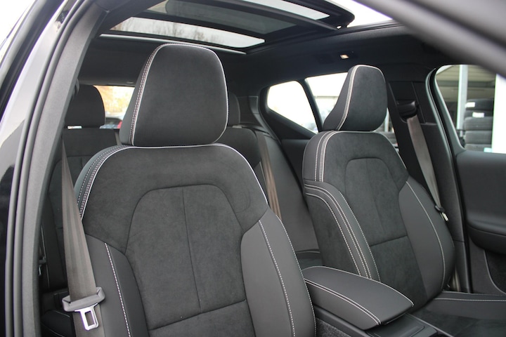 Hij biedt volop ruimte, deze Volvo EX40, en dankzij zijn elektrische aandrijving is er ook plenty vermogen voor een dynamische rijstijl. Geruisloos genieten tegen lage kosten? Dan is deze elektromotor iets voor u! De verwarmbare voorstoelen benadrukken nog maar eens dat we hier te maken hebben met een regelrechte verwenauto voor bestuurder en bijrijder. De comfortstoelen zitten op lange ritten zo prettig dat u bijna vergeet te pauzeren. Fun en functie wordt samengebracht in het elektrisch bedienbare glazen panoramadak. De elektrische achterklep opent met een druk op de knop, zodat u gemakkelijk toegang heeft tot de bagageruimte. Natuurlijk kunt u zonder. Maar waarom? Lekker toch, zo'n verwarmd stuurwiel? Perfect zicht bij nacht en slecht weer? Dat leveren de koplampen met matrix LED-verlichting. Tot de voorzieningen van deze auto behoren 20 inch lichtmetalen velgen, extra getint glas, in delen neerklapbare achterbank, verstelbare lendensteunen en snelheidsafhankelijke stuurbekrachtiging.