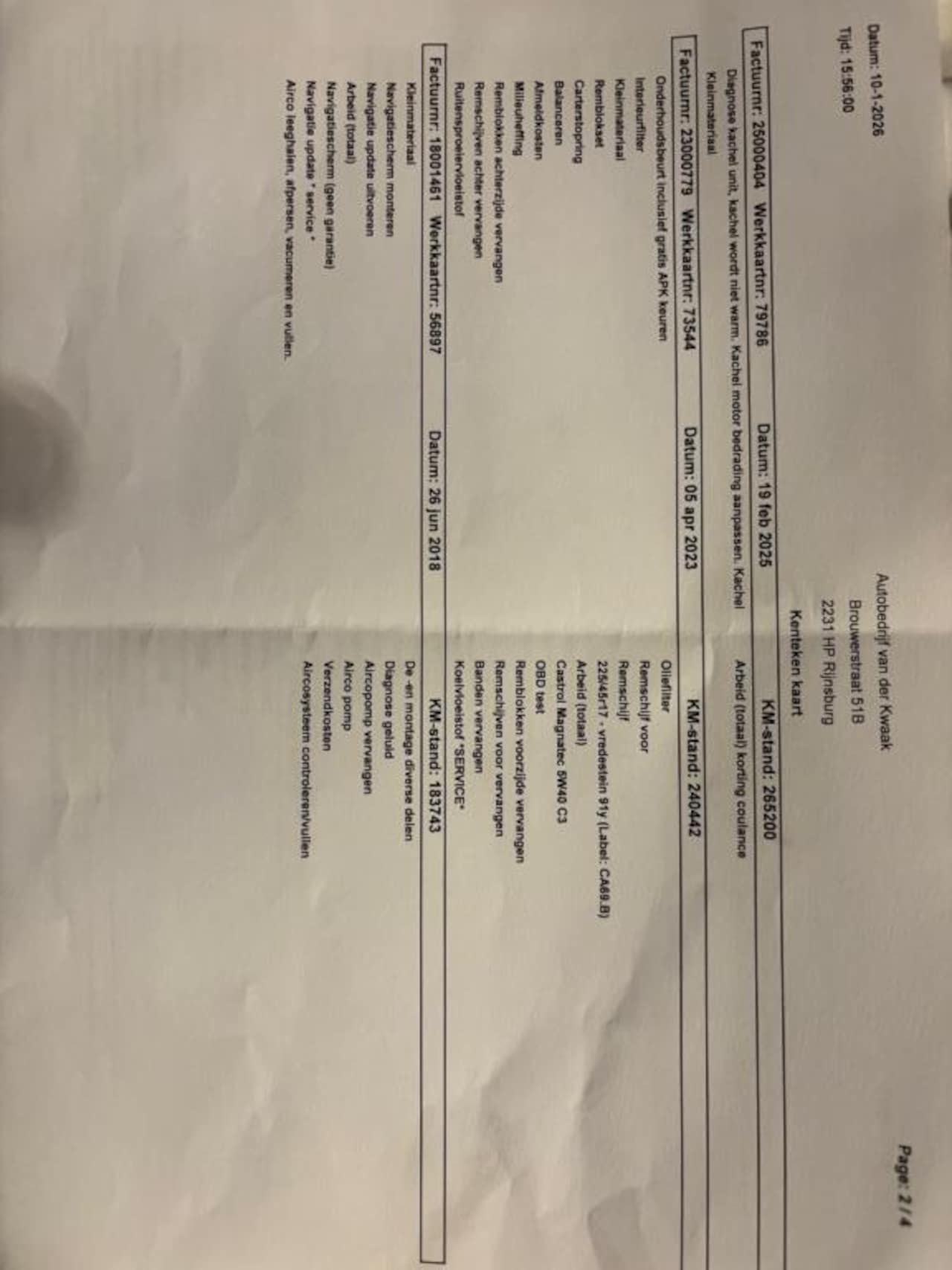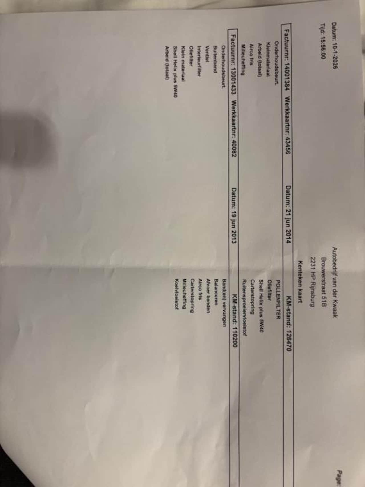 | APK | Bij aflevering |