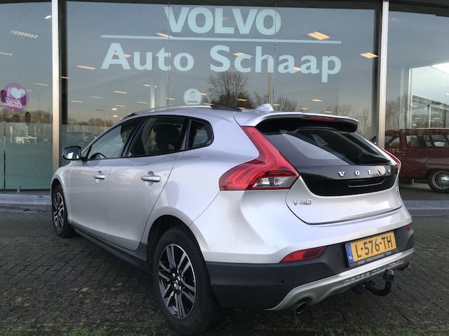Volvo V40 Cross Country 1.5 T3 Momentum Automaat in de kleur Bright Silver metallic. Voorzien van onder andere LED dagrijverlichting, meesturende bi-xenon koplampen, 16 inch lichtmetalen velgen, actief grootlicht, vaste trekhaak, parkeersensoren achter met camera, adaptieve cruise control, dodehoeksensoren, regensensor en start/stop. Bijna volledig Volvo dealer onderhouden, boekjes ter inzage.