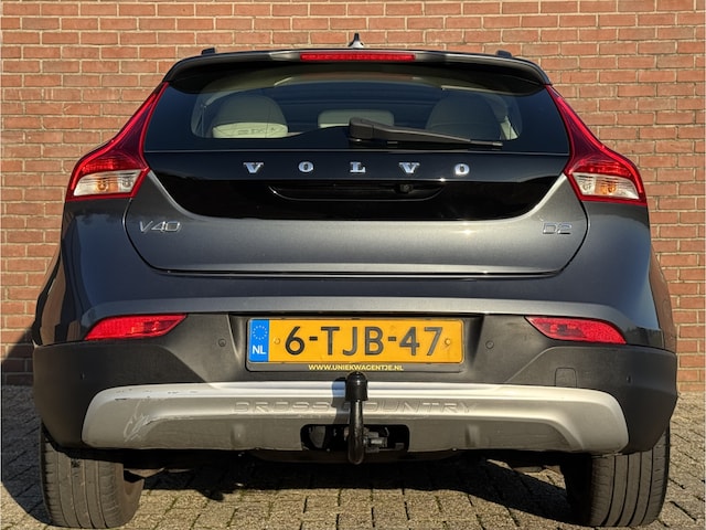 U rijdt gemakkelijk, comfortabel en zonder zorgen met deze Volvo V40 Cross Country. Het is een auto van het bouwjaar 2014. De aandrijving van deze Volvo komt voor rekening van een viercilinder dieselmotor en een handgeschakelde zesversnellingsbak. Het interieur ademt luxe door de leren bekleding. Zit u goed? De stoelen zijn eenvoudig instelbaar dankzij de elektrische bediening met geheugen. Het glazen panoramadak biedt u een breed zicht op de omgeving. Met de krachtige xenonverlichting heeft u optimaal zicht in het donker. Bij de uitrusting van deze auto horen onder meer 18 inch lichtmetalen velgen, dakspoiler, in delen neerklapbare achterbank, LED-achterlichten, verstelbare lendensteunen en snelheidsafhankelijke stuurbekrachtiging.