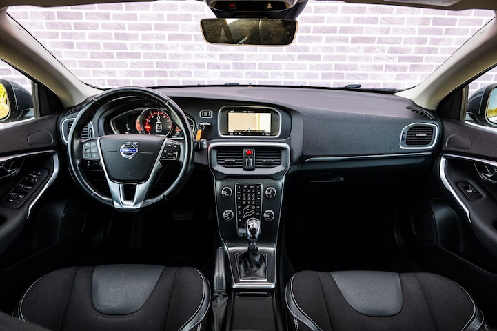 De auto is voorzien van een trekhaak en is een uitstekende caravantrekker. Oliepeil, bandenspanning, sloten en andere functies zijn via een speciale app overal te checken dankzij Connected Services. Een belangrijke veiligheidsvoorziening is de bediening van het audio-installatiesysteem en het navigatiesysteem met harde schijf, via knoppen op het stuur en middels spraakbediening. Omdat u nu eenmaal niet overal ogen heeft, is deze Volvo V40 voorzien van een achteropkomend verkeer waarschuwing die registreert wanneer de afstand tot uw achterligger te krap is. Met electronic climate control hoeft u alleen de gewenste temperatuur in te stellen. Het systeem doet de rest. Ook parkeersensoren achter, regensensor, cruise control, dvd-systeem, automatisch dimmende binnenspiegel en lederen stuur en versnellingspook zijn aan boord.