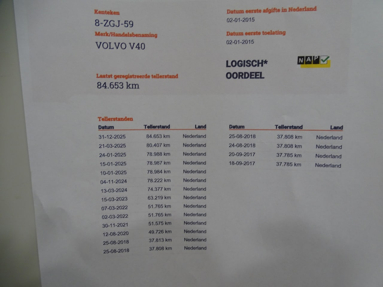 | Kilometerstand | 84.653 km |