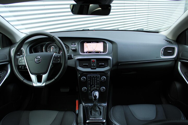 Vergeten af te sluiten? Bandenspanning onvoldoende? De speciale app geeft u direct een seintje met behulp van Connected Services. Het audio-installatiesysteem en het navigatiesysteem met harde schijf bedient u veilig met knoppen op het stuurwiel of met gesproken commando's. Deze Volvo V40 is voorzien van sensoren aan de achterzijde om een achteropkomend verkeer waarschuwing te geven als de afstand tussen u en een achterligger te klein is. De electronic climate control zorgt voor een behaaglijk klimaat in de auto. Parkeersensoren helpen u tijdens het in- en uitparkeren. En deze auto heeft ook regensensor, cruise control, dvd-systeem, automatisch dimmende binnenspiegel, lederen stuur en centrale deurvergrendeling met afstandsbediening als standaard uitrusting.