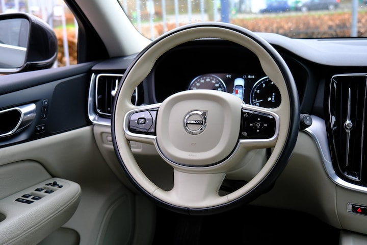 Neem plaats in de cockpit, start de motor en voel het vermogen. Met deze sportieve Volvo V60 hebt u altijd de controle. Een krachtige motor geeft deze auto zijn sportieve prestaties. En wat heeft deze auto nog meer in petto? Om te beginnen zien we het lederen interieur, dat een sfeer van luxe meebrengt. Maar als u gaat voor gemak, wordt u ook niet teleurgesteld. Kijk eens naar die elektrisch bedienbare achterklep! Koude start? Niet met de verwarmbare voorstoelen! Opvallend zijn de stoere sportstoelen, die zorgen voor een onwrikbare zit in de scherpe bochten. Natuurlijk kunt u zonder. Maar waarom? Lekker toch, zo'n verwarmd stuurwiel? Bij de uitrusting van deze auto horen onder meer 17 inch lichtmetalen velgen, LED koplampen, warmtewerend glas, in delen neerklapbare achterbank, LED-achterlichten en verwarmde ruitensproeiers.
