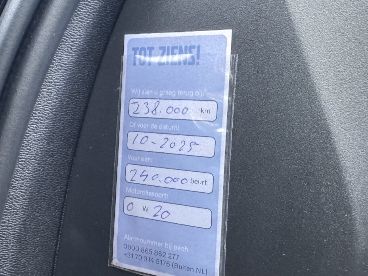 | APK | Bij aflevering |