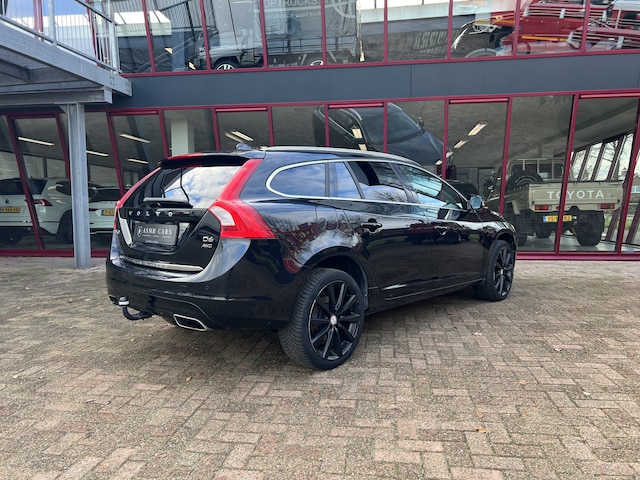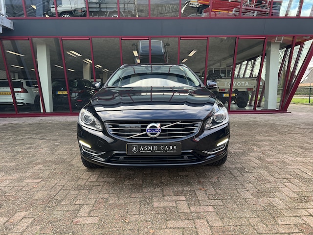 Door inruil verkregen nette Volvo V60. Mooie kleurcombinatie van saffierzwart met zwarte lichtmetalen velgen en een créme/zwart lederen interieur.