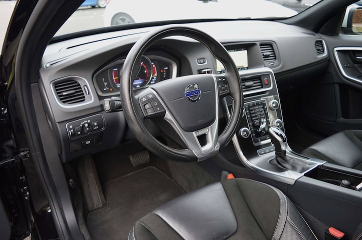 Volvo V60 2.4 D6 Twin Engine R-Design, voorzien van o.a.: automatische airco, half lederen/alcantara interieur, multifunctioneel stuurwiel, cruise control, 19" lichtmetalen velgen, achteruitrijcamera, LED dagrijverlichting, cruise control, full-map navigatiesysteem, elektrisch glazen dak, parkeersensoren voor en achter, elektrisch verstelbare voorstoelen met geheugen, trekhaak, onderhoudsboekjes ingevuld aanwezig.