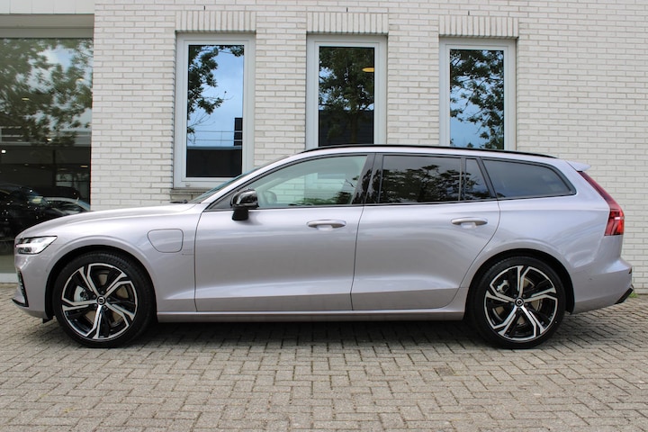 Soepel rijgedrag, een krachtige acceleratie en een laag brandstofverbruik, de hybride Volvo V60 is een innovatieve auto. We hebben het hier over een nieuwe auto, hij is nu direct leverbaar. Rijden op brandstof én elektriciteit? Dat kan, met de hybride motor van deze Volvo V60. De elektromotor ondersteunt of neemt het deels over van de brandstofmotor als dat uitkomt. Scheelt lekker in de kosten! Deze Volvo V60 is luxe afgewerkt. Kijk maar naar het lederen interieur! Zelfs op de koudste dagen zorgen de stoelverwarming met massagefunctie, stuurverwarming en verwarmbare achterbank voor een comfortabele rijervaring. U past de stoelen moeiteloos aan, ze zijn elektrisch in te stellen en hebben bovendien een geheugen. Voor extra lichtinval en een frisse luchtstroom zorgt het elektrisch bediende panoramadak. De achterklep opent automatisch met een druk op de knop. Handig als u met volle handen staat. Tot de uitrusting behoren ook 19 inch lichtmetalen velgen, Full LED koplampen, extra getint glas, in delen neerklapbare achterbank en LED-achterlichten.