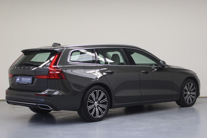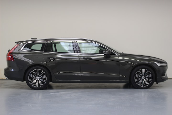 Volvo V60 T6 Recharge AWD Inscription. Deze rijk uitgeruste Volvo V60 is o.a. voorzien van: Volledig Nappa Lederen bekleding (geperforeerd) met Comfort stoelen en zit verlengers, Sensus Connect met High Performance Audio 10 High Performance luidsprekers, Bluetooth handsfree systeem met audiostreaming, Verwarmde voorstoelen, Ventilatie op voorstoelen, Sensus Navigatie met geïntegreerd hard-disk navigatiesysteem, Zilverkleurige roof rails, Inscription 18" 10-Multi Spaaks Black / Diamond Cut velgen voorzien van zomerbanden, Automatisch dimmende binnenspiegel en -buitenspiegels, Full-LED koplampen met grootlichtassistent, Chromen raamomlijsting, Trekhaak met semi elektrisch inklapbare kogel, USB-poort, Smartphone integratie: Apple® CarPlay / Android Auto incl. extra USB-poort en Grafisch Head-up Display voor weergave van de ingestelde snelheid van de adaptieve cruise control, verkeersbordenherkenning en aanwijzingen van de navigatie.