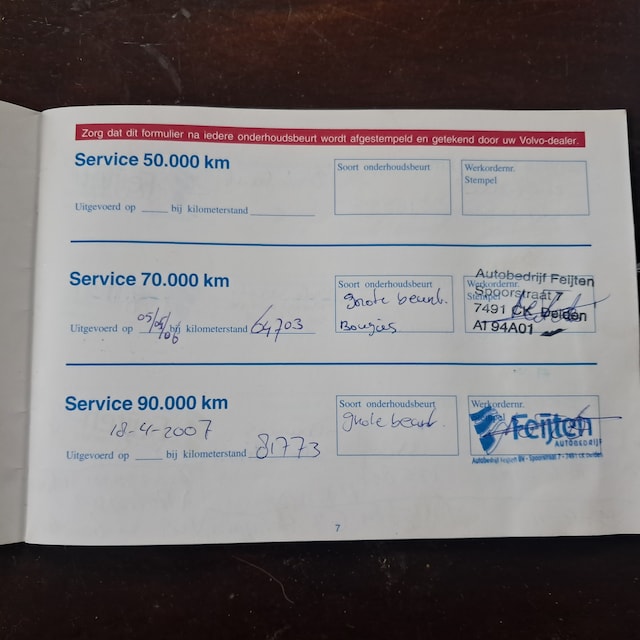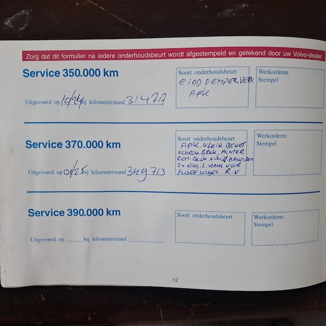 Olie/filter ververst. Tevens is de auto opnieuw uitgelijnd. Hij rijdt weer zoals een volvo moet rijden. De distrubutie is bij 275700 gedaan dus voorlopig geen werk aan. Staat op 4 goeie merkbanden en alle opties werken. Heerlijk schuif/kantel dak wat niet lekt.