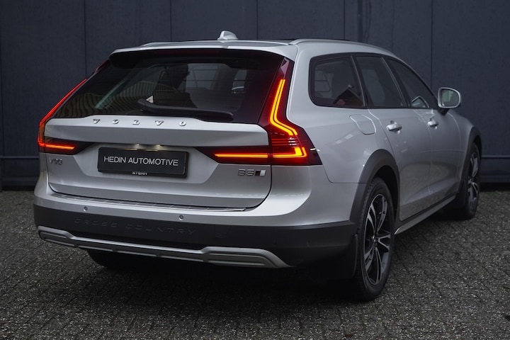 Alle technologie in de Volvo V90 Cross Country is er op gericht om jouw rit veilig en gemakkelijk te laten verlopen. In deze auto vind je een benzinemotor en een automatische transmissie. Ribbels en hobbels in de weg worden royaal gladgestreken door de aanwezige luchtvering. Met het lederen interieur ervaar je direct het gevoel van luxe en comfort. Dankzij de elektrische stoelbediening is het gemakkelijk om de optimale zitpositie te vinden. Comfort, licht en het complete gevoel van ruimte wordt verzorgd door het elektrisch bediende panoramadak. Een praktische extra is de elektrisch bedienbare achterklep die opent en sluit met een druk op de knop. Als je de stuurverwarming inschakelt, geniet jij van weldadige warmte voor jouw handen en vingers. Bij de uitrusting van deze auto horen onder meer 19 inch lichtmetalen velgen, LED koplampen, geluidsisolerende ramen, in delen neerklapbare achterbank, LED-achterlichten en verstelbare lendensteunen.
