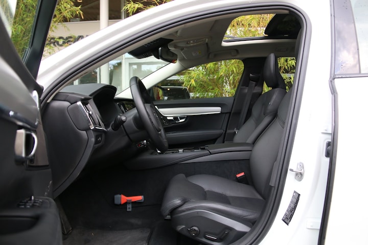 Betrouwbaarheid uit Zweden, dat is Volvo. Vooruitstrevend op elk gebied en dus een fantastisch bezit voor jarenlang veilig en innovatief rijden. 'Volvo for life'. Naast de verbrandingsmotor beschikt de auto ook over een elektromotor, die zorgt voor een extra laag brandstofverbruik. Dat noemen ze nou een ruimtelijk effect: het elektrisch bediende glazen panorama dak, dat net zo gemakkelijk open en dicht gaat als de elektrisch bedienbare achterklep. En ondertussen het ware luxegevoel van het lederen interieur. Dankzij de elektrische stoelbediening is het gemakkelijk om de optimale zitpositie te vinden. Zelfs als het buiten ijzig koud is, kunnen zowel de bestuurder als de passagiers op de achterbank snel opwarmen, dankzij de verwarmbare stuurwiel en de achterbankverwarming. Niet alleen u zelf geniet van de luchtvering; ook uw banden en remmen hebben veel minder te verduren. En de comfortstoelen zorgen voor volmaakte ontspanning. Bij de uitrusting van deze Volvo horen onder meer 20 inch lichtmetalen velgen, Full LED koplampen, in delen neerklapbare achterbank, LED-achterlichten, verstelbare lendensteunen en verwarmde ruitensproeiers. Verken de digitale wereld van mobiliteit waar het digitale dashboard alles biedt wat u nodig heeft om uw reis comfortabel te maken. De 360 graden camera op deze auto biedt u een volledig, panoramisch zicht op de omgeving. Adaptive cruise control is veilig en comfortabel. De snelheidsregelaar houdt automatisch afstand tot het voertuig dat voor u rijdt. Een veiligheidsverhogende optie is de ingebouwde spraakbediening. Terwijl u uw ogen op de weg houdt, bedient u de auto met uw stem. In één oogopslag weet u de complete systeemstatus van deze auto. Dankzij Connected Services. Extra opties op deze auto zijn: Harman Kardon-audiosysteem, full map navigatiesysteem, achteropkomend verkeer waarschuwing, electronic climate control, DAB ontvangst en regensensor. De nieuwste veiligheidssystemen komen in deze Volvo V90 samen. Rijden met het overzicht van een straaljagerpiloot? De praktische en veilige head-up display projecteert dashboardinfo binnen uw gezichtsveld, zodat u uw blik nooit hoeft te verplaatsen. Oog op de weg! Onderweg fungeert de verkeersbord-detectie als het ware als uw bijrijder en attendeert u op de verkeersborden langs de weg. Voorzien van het Lane-keeping systeem. Ofwel: blijf automatisch in je baan. Bovenop deze veiligheidsfeatures heeft deze Volvo bovendien dodehoekdetector detectiesysteem, forward collision warning system, hill hold functie, brake assist, vermoeidheidsherkenning en bandenspanningcontrolesysteem. Even bellen voor een afspraak en u kunt deze auto van top tot teen zelf bekijken.