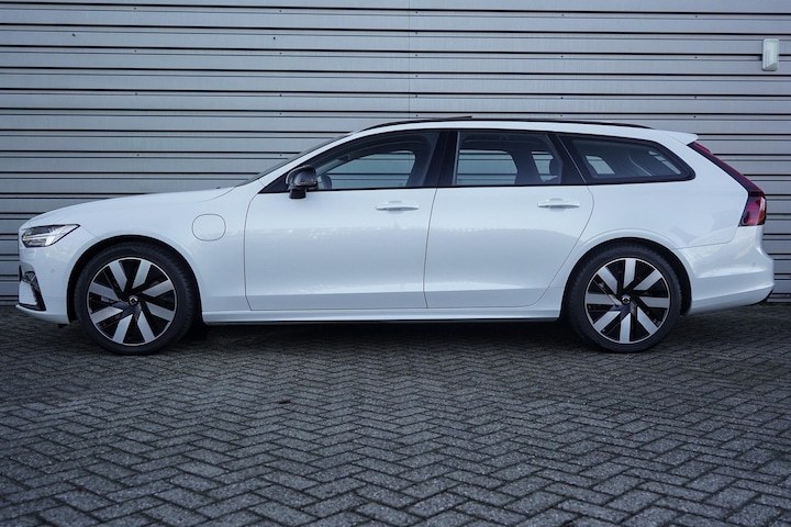 Stijlvol en veelzijdig, dat zijn misschien wel de belangrijkste kenmerken van de Volvo V90. Dit exemplaar is bovendien voorzien van verschillende systemen die het autorijden aangenamer en veiliger maken. Zuinig, slim en milieuverantwoord! Deze hybride auto combineert een verbrandingsmotor en een elektromotor: voordelig rijden en gunstig in onderhoud. Aan gemak én ruimte is uitstekend gedacht: een elektrisch bediend glazen panorama dak en een elektrisch bedienbare achterklep. En dan krijg je het mooie lederen interieur er ook nog eens bij! Zit je goed? De stoelen zijn eenvoudig instelbaar dankzij de elektrische bediening met geheugen. Deze auto biedt stoelverwarming, een verwarmbare achterbank en een verwarmbaar stuur, waardoor het zelfs op de koudste dagen aangenaam rijden is. Ook 19 inch lichtmetalen velgen, Full LED koplampen, in delen neerklapbare achterbank, LED-achterlichten, verstelbare lendensteunen en verwarmde ruitensproeiers zijn aan boord.