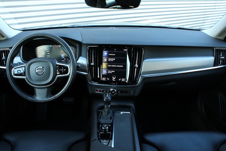 Met zijn stijlvolle uiterlijk, comfortabele interieur en uitstekende rijkwaliteiten is deze Volvo V90 een goede keus voor liefhebbers van Zweeds design. Hij heeft een benzinemotor en een automatische transmissie. Hoe koud het buiten ook is, het verwarmbare stuurwiel en de verwarmbare voorstoelen brengen uw handen, vingers en lichaam snel weer op temperatuur. De achterklep opent automatisch met een druk op de knop. Handig als u met volle handen staat. Tot de uitrusting van deze Volvo behoren ook 18 inch lichtmetalen velgen, LED koplampen, in delen neerklapbare achterbank, LED-achterlichten, verstelbare lendensteunen en snelheidsafhankelijke stuurbekrachtiging.