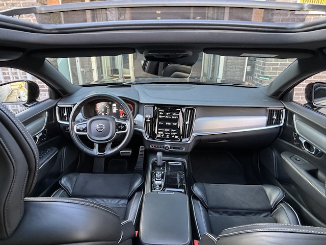 V90 T6 AWD Recharge 341pk R-Design. Na 4 uur thuis laden weer 45km elektrische range. O.a. voorzien van 2x el. stoelverstelling, Stoelverwarming, verwarmd stuurwiel, Getint glas, keyless drive, 360 graden rondom zicht PDC camera, DAB, Leer bekleed dashboard, Harman Kardon Audio, Panorama dak, PDC voor en achter, El. bediende achterklep , el. inklapbare trekhaak, voorverwarmen en koelen via de Volvo on call app en Adaptieve cruise-control met Pilot Assist.