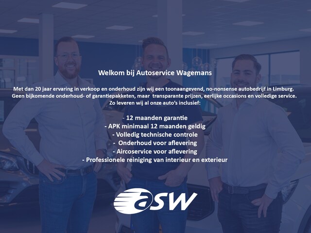 Garantie: Bij Autoservice Wagemans krijgt u op elke occasion 12 maanden wettelijke garantie. Daarnaast wordt iedere auto die jonger is dan 6 jaar voorzien van maar liefst 6 maanden volledige garantie. Auto's ouder dan 6 jaar zijn standaard voorzien van 3 maanden volledige garantie. Elke auto wordt voor aflevering standaard voorzien van een onderhoudsinspectie en onderhoudsbeurt inclusief airconditioning service. Indien er een defect op treedt binnen de garantieperiode kunt u altijd bij ons terecht. Helder en transparant. Autoservice Wagemans rekent geen aflever- of garantiekosten. Kwaliteit voorop!