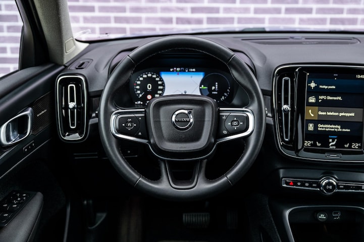 Dankzij hoogwaardige techniek en verschillende veiligheidssystemen, biedt deze Volvo XC40 u optimale veiligheid en comfort tijdens iedere rit. Door de combinatie van brandstof- en elektromotor rijdt u met deze hybride Volvo XC40 een stuk voordeliger. En het scheelt in uitstoot bovendien. Misschien valt u voor het lederen interieur. Maar wat een licht van binnen ook, dankzij het elektrisch bediende glazen panorama dak; en niet te vergeten het grote gemak van een elektrisch bedienbare achterklep. 's Winters komen de verwarmbare voorstoelen heerlijk van pas. Schouders en onderrug krijgen een VIP-behandeling door de comfortstoelen. Als het buiten koud wordt, voelt zo'n verwarmd stuurwiel heerlijk aan. Bij de zeer complete uitrusting van deze auto behoren ook 20 inch lichtmetalen velgen, LED koplampen, extra getint glas, in delen neerklapbare achterbank, LED-achterlichten en verstelbare lendensteunen.