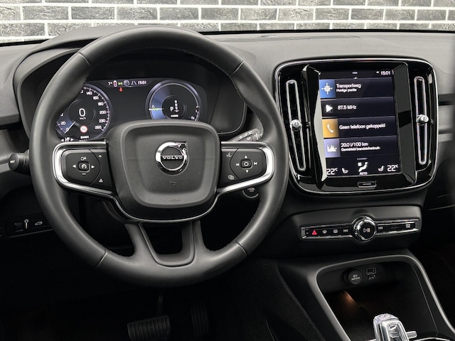 Wat Volvo biedt, is al jaren ongeëvenaard. Duurzaam, innovatief, comfortabel en veilig: 'Volvo for life'. Kiezen tussen benzine of elektrisch hoeft bij deze Volvo XC40 niet. De hybride motor schakelt gemakkelijk over als u dat wilt. Het kan niet op: een fraai lederen interieur, zeeën van licht met het elektrisch bediende glazen panorama dak en probleemloos in- en uitladen met de elektrisch bedienbare achterklep. De meegeleverde stoelverwarming zorgt in no time voor een behaaglijk gevoel als het buiten koud is. Stramme vingers krijgen 's winters een VIP-behandeling van het verwarmd stuurwiel. Bij de rijke uitrusting horen ook 20 inch lichtmetalen velgen, LED koplampen, extra getint glas, in delen neerklapbare achterbank, LED-achterlichten en verstelbare lendensteunen.