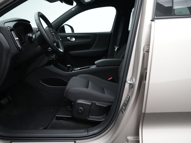 Kijk naar de geraffineerde lijnen. Verbaas u over de soepele aandrijftechniek. De elektrische Volvo XC40 trakteert u op een onvergelijkbare rijervaring. De fluisterstille elektromotor zorgt voor een serene rijervaring. De krachtige motor geeft deze Volvo uitstekende prestaties. Tijdens gure dagen is het prettig zitten in de verwarmbare voorstoelen. Lekker zitten doet u in de comfortstoelen van deze auto. Bij de zeer complete uitrusting van deze auto behoren ook 19 inch lichtmetalen velgen, LED koplampen, in delen neerklapbare achterbank, LED-achterlichten, verstelbare lendensteunen en snelheidsafhankelijke stuurbekrachtiging. U wordt geïntroduceerd tot de digitale wereld van mobiliteit waarop alles wat u wenst wordt geprojecteerd op het digitale dashboard. Zelfs een kleine aanrijding kan flinke kosten veroorzaken. Gelukkig laat de achteruitrijcamera precies zien wat er zich achter de auto bevindt en geeft een waarschuwingssignaal. Pech of storing, altijd vervelend. Maar met Connected Services weet u direct wat eraan scheelt. En dus ook wat er moet gebeuren. Hoog, laag, midrange: het high performance audiosysteem is volledig afgestemd op de akoestiek in deze auto. Onderweg laadt u uw smartphone snoerloos op met behulp van de draadloze oplaadmogelijkheid voor telefoons. U bent in deze Volvo ook voorzien van dashboard met spraakbediening, full map navigatiesysteem, WIFI-hotspot, achteropkomend verkeer waarschuwing, kruisend verkeer detectie en electronic climate control. U geniet nog meer van het rijden met uw Volvo omdat u wordt beschermd door intelligente veiligheidssystemen. Wat deze auto ook kan, is lezen. Hij 'leest' voor u de verkeersborden tijdens de rit en attendeert u erop door ze op het dashboard te projecteren. Met het Lane-keeping systeem gaat u nooit onbedoeld over de streep. Forward collision warning is een automatisch waarschuwingssysteem dat direct in werking treedt bij gevaar voor een kop-staartbotsing. In deze Volvo vinden we verder een hill hold functie, brake assist, vermoeidheidsherkenning en bandenspanningcontrolesysteem. Zullen we 'm even voor u klaarzetten? Neem nu contact op voor een proefrit!