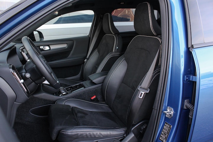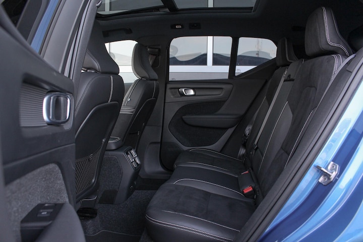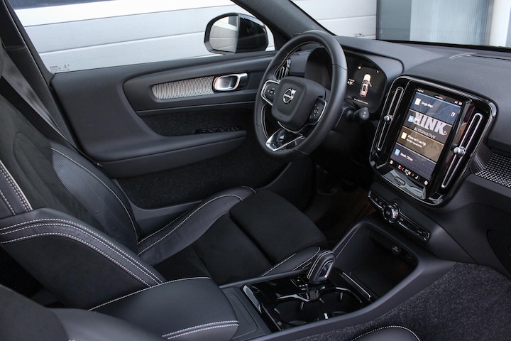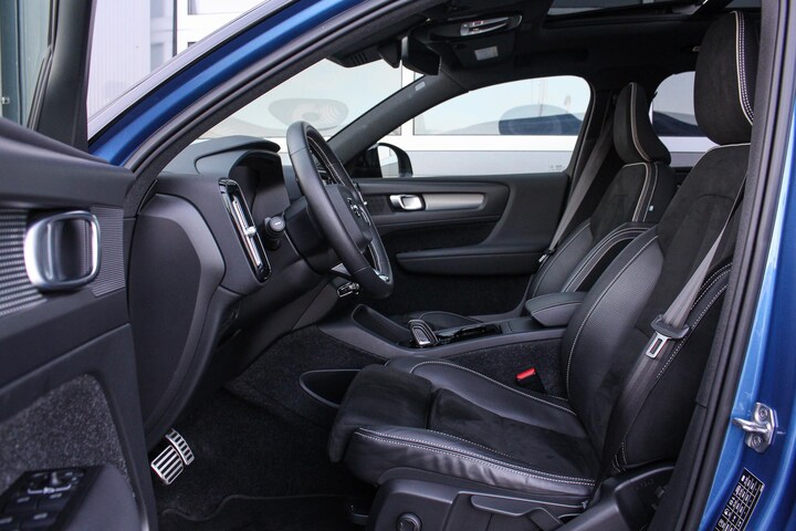De eerste eigenaar koos bij deze XC40 P8 Recharge voor de sportieve Inscription Bursting Blue metallic exterieur kleur met Black Stone Solid dak die de strakke lijnen van de auto goed tot zijn recht laat komen, verder werd hij voorzien van 19 inch black diamond cut lichtmetalen velgen, een fraai panoramadak, extra getint privacy glass aan de achterzijde en hoogglans zwarte afwerking rondom de ramen en grill. Binnen vindt je uitstekend zittende sportstoelen welke verwarmbaar zijn (inclusief verwarmd stuurwiel) uitgevoerd in "Charcoal" nappa Leder met nubuck bekleding welke een fraaie combinatie vormt met de sportieve "Cutting Edge" aluminium sierinleg en de zwarte hemelbekleding.