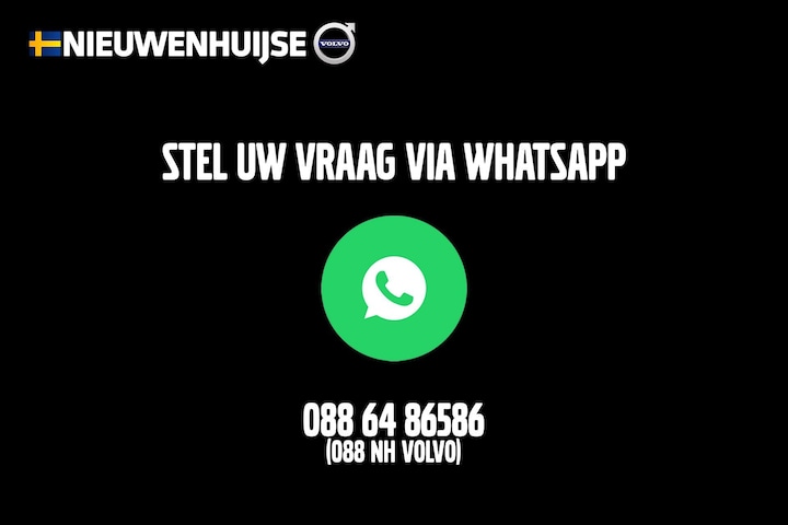 Dit afleverpakket bevat (in plaats van afleverpakket "Standaard"): BOVAG garantie (12 maanden); BOVAG 40-Puntencheck; Nieuwe APK; Nieuwe APK, Omruilgarantie 14 dagen / 750 km, Onderhoud volgens schema, Poetsen interieur + exterieur, Software update, Tenaamstelling, Volle tank / accu, Volvo Assistance 12 maanden, Volvo On Call 1 jaar