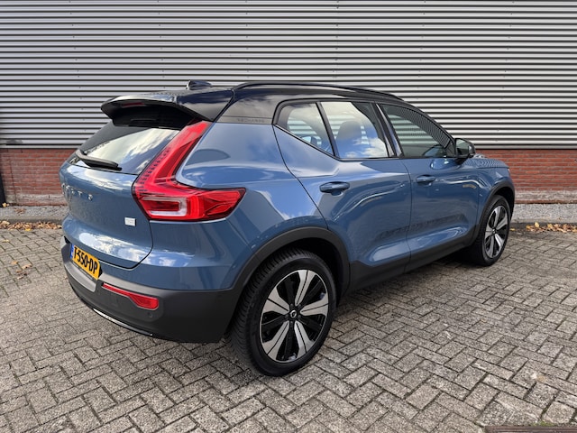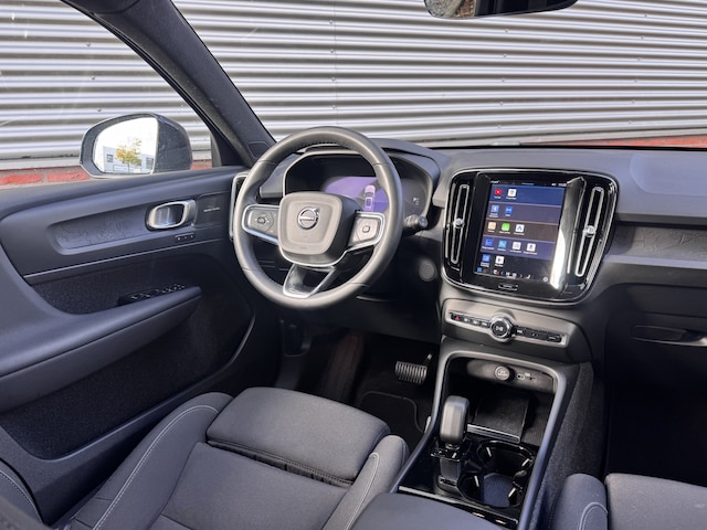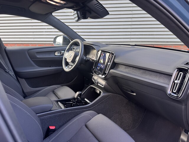 De vormgeving van deze Volvo XC40 is geoptimaliseerd voor een optimale actieradius. Zo haalt u maximaal rijplezier uit elke kilometer. Met de elektromotor rijdt u stil en snel de toekomst in. Maar ook schoon en zuinig. Een krachtige motor geeft deze auto zijn sportieve prestaties. Ruimte? Ja hoor! Open maar eens de elektrisch bedienbare achterklep en check de bagageruimte; stap daarna in om het weidse gevoel te ervaren dat het elektrisch bediende glazen panorama dak u bezorgt. Laat de kou maar komen! U zit altijd goed met de heerlijke stoelverwarming. Bij de zeer complete uitrusting van deze auto behoren ook 19 inch lichtmetalen velgen, LED koplampen, in delen neerklapbare achterbank, LED-achterlichten, verstelbare lendensteunen en snelheidsafhankelijke stuurbekrachtiging.