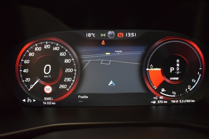 De standkachel is een ideale optie voor de koude maanden. U stapt altijd in een voorverwarmde auto en hoeft nooit meer ruiten te krabben. Stel de interface voor uw cockpit naar wens in met het digitale dashboard van deze auto. Als u de adaptive cruise control inschakelt, regelt de auto zelf de snelheid en de afstand tot de auto voor u. De ingebouwde file assistent is een echte helper als het vaststaat onderweg. Het systeem meet ruimte tot de auto vóór u permanent en activeert zelfs de remmen als uw voorligger stopt. Pech oplossen en zelfs voorkomen? Gaat eenvoudig. Via Connected Services heeft u alle data in de hand, gewoon op de smartphone! De Volvo is standaard voorzien van: dashboard met spraakbediening, high performance audiosysteem, navigatiesysteem met harde schijf, WIFI-hotspot, achteropkomend verkeer waarschuwing en R-design.