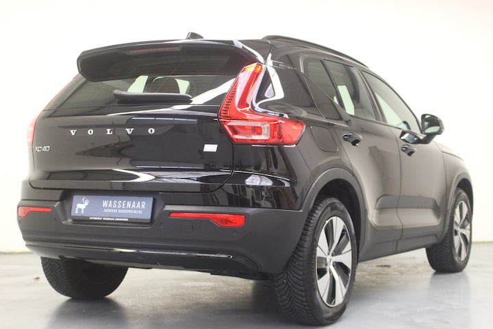 Volvo XC40 1.5 Plug-in Hybride Plus Dark Automaat. Deze Volvo XC40 is o.a. voorzien van: Volledig lederen bekleding met handmatig verstelbare zitting verlenging voorstoelen, Volvo Sensus Connect met 9" Touchscreen voor bediening van klimaat, audio, internetdiensten, apps, auto menu, uitgebreide Voice Control functionaliteit, Sensus navigatie hard-disk navigatiesysteem inclusief Nederlandstalige stembediening, stuurwielbediening, Bluetooth telefoonsysteem met Bluetooth audiostreaming, 18" 5-spaaks Glossy Black velgen voorzien van Michelin All-Season banden, Draadloos telefoon opladen, Elektrisch bedienbare achterklep, Automatisch dimmende binnen- en buitenspiegels, Alarm klasse 3, Electronic Climate Control Dual Zone met Cleanzone, Regensensor, Elektrisch inklapbare en verwarmbare buitenspiegels, Snelheidsafhankelijke stuurbekrachtiging, Smartphone integratie: Apple® CarPlay / Android Auto incl. extra USB-poort in de middenconsole en Stoelverwarming.