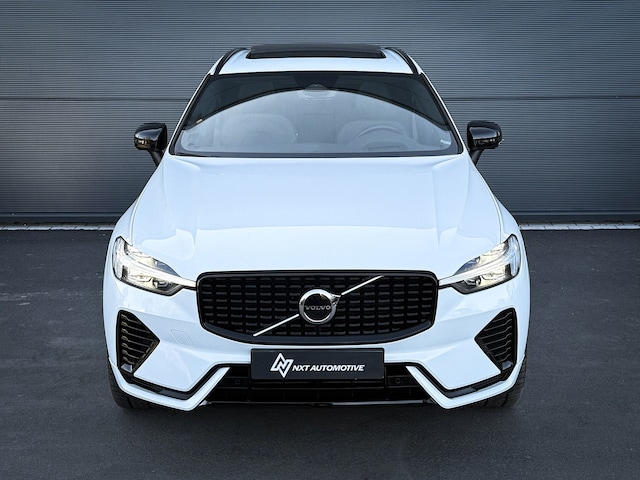 Super complete en sportieve Volvo XC60 2.0 T6 Plug-in Hybrid AWD R-Design, uitgevoerd in een elegant witte lak gecombineerd met het kenmerkende R-Design exterieurpakket met hoogglans zwarte accenten, wat zorgt voor een extra krachtige en dynamische uitstraling, in combinatie met een luxe lederen interieur en een zeer rijke uitrusting.