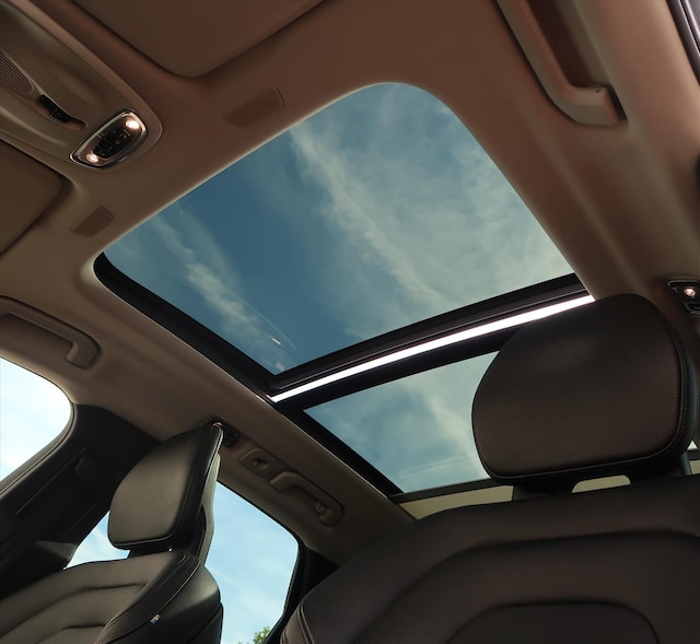 - Elektrisch bedienbaar tweedelig panoramisch glazen schuif-/kanteldak met elektrisch bedienbaar zonnescherm