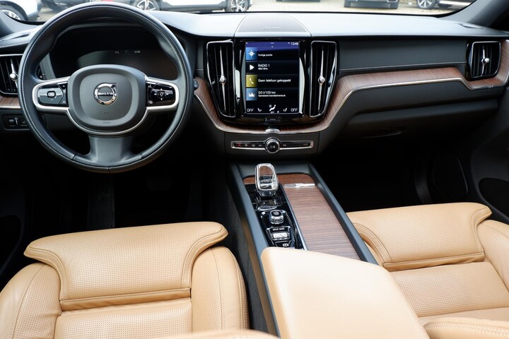 'Volvo for life', zeggen ze in Zweden. En daarin zit het allemaal besloten: prestaties, innovatie en vooral veilig en vooruitstrevend rijden. Natuurlijk ook in dit model. Het beste van twee werelden komt samen in de hybride motor. Daarmee wordt deze Volvo XC60 aangedreven door zowel brandstof als door de elektrische accu, die al rijdend of remmend wordt bijgeladen. We nemen u in gedachten even mee. Stop uw bagage moeiteloos achterin dankzij de elektrisch bediende achterklep, neem plaats achter het stuur en zie meteen het luxe lederen interieur. Even het elektrisch bediende glazen panorama dak open en rijden maar! 's Winters komen de verwarmbare voorstoelen heerlijk van pas. En ze zijn ook nog eens voorzien van massagefunctie. Zit u goed? De stoelen zijn eenvoudig instelbaar dankzij de elektrische bediening met geheugen. De aanwezige luchtvering is niet alleen zeer prettig vanwege de gelijkmatige wegligging, maar draagt ook bij aan veiligheid. En de comfortstoelen maken het relaxte gevoel compleet. Koude handen? Da's voorbij met het verwarmd stuurwiel. Pak aan! Ook 20 inch lichtmetalen velgen, LED koplampen, aluminium dakrailing, elektrisch inklapbare buitenspiegels, in delen neerklapbare achterbank en actieve hoofdsteunen zijn aan boord.