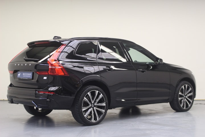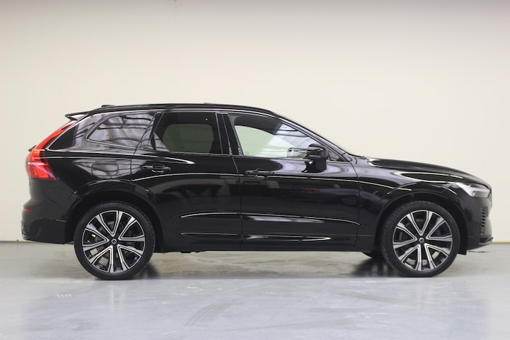 Volvo XC60 2.0 T6 350pk Recharge (Long Range) AWD R-Design Hybride. Deze rijk uitgeruste Volvo XC60 is o.a. voorzien van: Volledig Lederen bekleding met Sport stoelen met zitverlengers, Achtvoudig elektrisch verstelbare bestuurderstoel met geheugenfunctie, Elektrisch verstelbare passagiersstoel met geheugenfunctie, Bluetooth handsfree systeem met audiostreaming, Adaptive Cruise Control met Pilot Assist, Elektrisch bedienbaar glazen panoramisch schuif-/kanteldak inclusief elektrisch bedienbaar zonnescherm, Online Google Maps navigatiesysteem, Extra getint glas achterportieren en bagageruimte, Gelamineerde zijruiten rondom, Elektrisch bedienbare achterklep, 21" 5-Dubbel Spaaks Diamond Cut / Black voorzien van zomerbanden, Geïntegreerde zittingverhogers buitenste zitplaatsen tweede zitrij, Parkeersensoren achter, USB-poort, Elektrische achterklep, Trekhaak met semi elektrisch inklapbare kogel, Parkeerverwarming met timer, Verwarmbare voorruit, Smartphone integratie: Apple CarPlay / Android Auto incl. extra USB-poort.