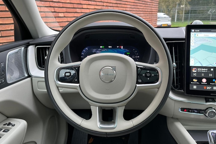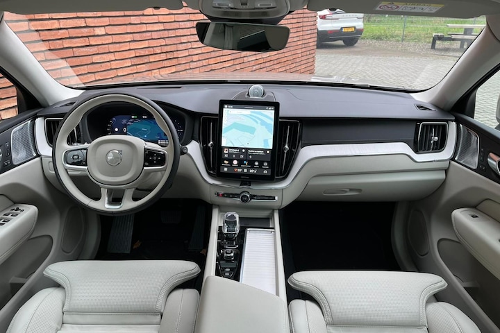 Rij goed, rij comfortabel en rij veilig. Of, zoals onze Zweedse bovenburen zeggen: 'Volvo for life'. Eindeloos veel veilige, vooruitstrevende kilometers met maximaal rijplezier. Dat krijgt u met een Volvo. 'Volvo for life'! Deze nieuwe auto is nu uit voorraad leverbaar. Twijfelt u nog tussen rijden op benzine of elektrisch? Niet nodig. Deze hybride Volvo XC60 doet het allebei. Uitstekend wegcontact, extreem lage windgevoeligheid: de luchtvering zorgt ervoor! Ook een fijne dosis klasse is bijgeleverd, met het lederen interieur. Naast het verwarmbare stuurwiel en de stoelverwarming, benadrukt de massagefunctie op de voorstoelen dat we hier te maken hebben met een regelrechte verwenauto. Zit u goed? De stoelen zijn eenvoudig instelbaar dankzij de elektrische bediening met geheugen. Het elektrisch bediende glazenpanorama dak zorgt voor licht en gevoel van ruime. De achterklep opent automatisch met een druk op de knop. Handig als u met volle handen staat. Tot de uitrusting van deze Volvo behoren ook 21 inch lichtmetalen velgen, Full LED koplampen, extra getint glas, in delen neerklapbare achterbank, LED-achterlichten en verwarmde ruitensproeiers.
