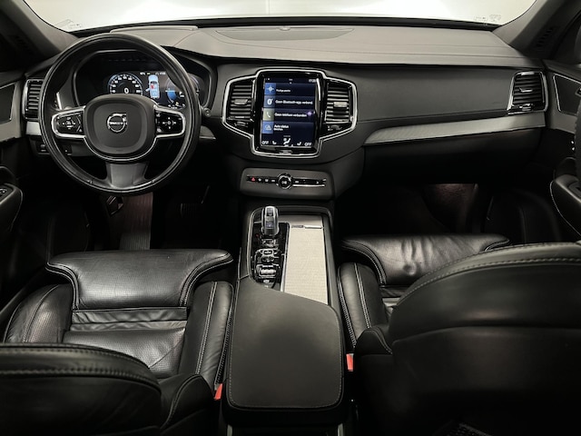 U rijdt gemakkelijk, comfortabel en zonder zorgen met deze Volvo XC90. Onder de motorkap een elektromotor en een verbrandingsmotor. Veel duurzame kilometers dus! Klinkers of asfalt? U merkt het verschil niet door de luchtvering. Als we het over extra cachet hebben, moeten we zeker het lederen interieur noemen. Zit u goed? De stoelen zijn eenvoudig instelbaar dankzij de elektrische bediening met geheugen. Hoogstaande comfortfuncties zoals stoelverwarming, verwarmbare achterbank en een verwarmbaar stuur maken deze auto tot een uitzonderlijke keuze. Het elektrisch bediende glazenpanorama dak zorgt voor licht en gevoel van ruime. Een handige voorziening op deze auto is de elektrische achterklep die u op afstand kunt openen. Natuurlijk behoren 3e zitrij met 2 stoelen, 20 inch lichtmetalen velgen, LED koplampen, extra getint glas, verstelbare lendensteunen en verwarmde ruitensproeiers ook tot de uitrusting van deze complete auto.