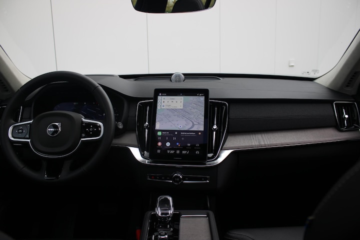Deze Volvo XC90 gaat met gemak nog vele, vele, vele tienduizenden kilometers mee. Energiek rijgedrag, fraaie uitstraling en een plezier om in te rijden, deze Volvo XC90. Brandstofmotor, elektromotor? Deze hybride Volvo XC90 combineert ze. En dat is te merken bij de pomp, want die ziet u voortaan minder vaak. Op pad met meer mensen? Dat kan! Met de elektrisch bedienbare achterklep is het makkelijk inladen en de derde zitrij zorgt voor nog meer zielen en nog meer vreugd aan boord. Toch voelt het heel ruim en licht, dankzij het elektrische bediende glazen panorama dak. Ongeacht hoe koud het buiten is, het verwarmbare stuurwiel samen met de achterbankverwarming zorgt ervoor dat iedereen in de auto zich snel opwarmt. Neem plaats op de comfortabele stoelen. Dankzij de elektrische bediening en het geheugen is het eenvoudig om hierin de beste zitpositie te vinden. Hobbels en kuilen in de weg? U voelt er niets van, dankzij de luchtvering en de comfortstoelen. Voorzien van matrix LED-verlichting. De auto dimt precies dat deel van de lichtstraal waar de voor- of tegenliggers in rijden. De overige segmenten blijven aan en verlichten de weg. In deze auto profiteert u onder andere ook van: 21 inch lichtmetalen velgen en in delen neerklapbare achterbank.